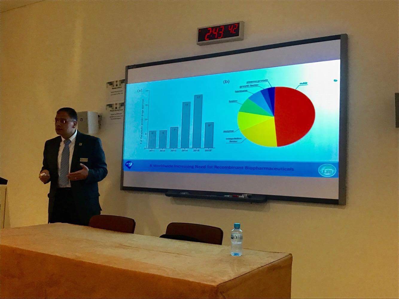 Dr. Sami El Khatib, Assistant Dean of the School of Arts and Sciences represented the Lebanese International University as an Invited Speaker through a Workshop entitled "The Basis of Recombinant Therapeutic Production and Development". The workshop introduced the basic techniques related to the use of molecular biotechnology in the development of "Therapeutic Proteins". Recombinant hormones, enzymes, antibodies, and antibodies derivatives, as well as the development of Xenomice, were introduced. Challenges in obtaining soluble functional proteins were also discussed. The workshop targeted graduate students in Molecular Biology, Biotechnology, Pharmacists, and Lab Technicians.