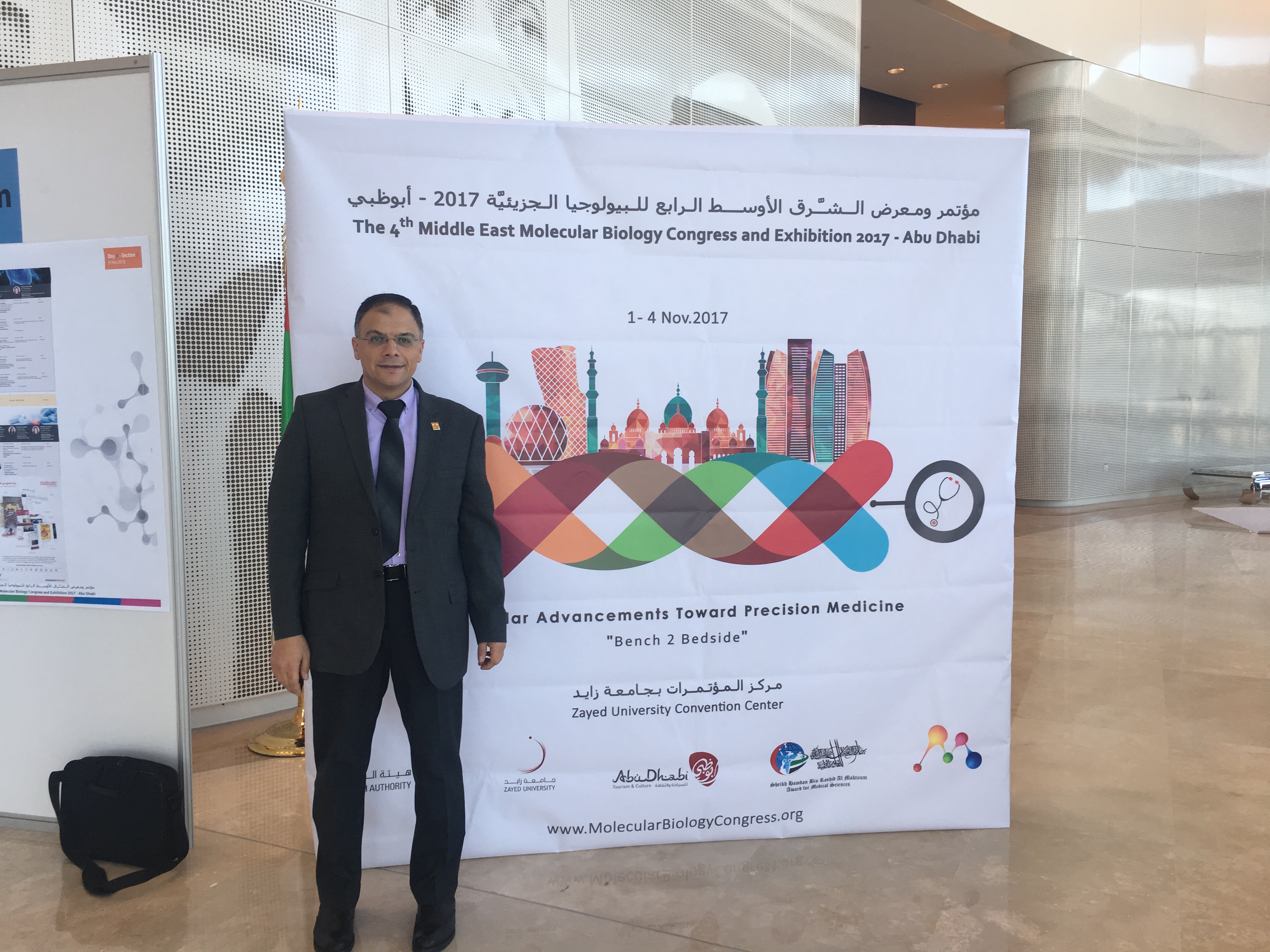 The Middle East Molecular Biology Society (MEMBS) in collaboration with Abu Dhabi Health Authority along with the Association for Molecular Pathology and European Society of Human Genetics organized the 4th Middle East Molecular Biology Congress and Exhibition 2017 at Zayed University Convention Center – Abu Dhabi – UAE on November 1st till 4th, 2017. The main focus of this year's conference targeted the Molecular Advancements toward Precision Medicine "From Bench to Bedside".