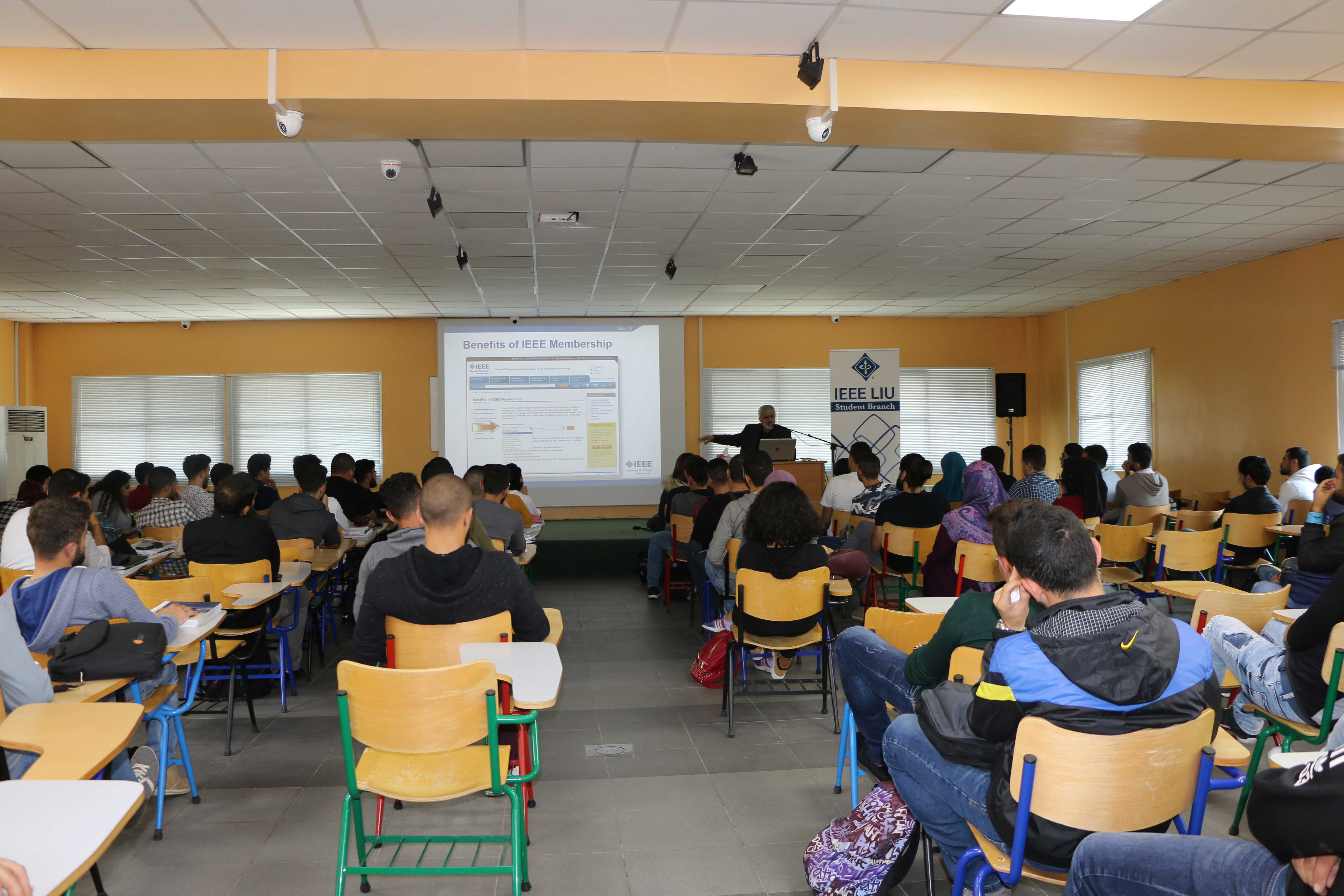 The Engineering Student Club in Nabatieh ESC-N and the IEEE - LIU Student Branch have organized, on Monday 30 October 2017, their first event in Nabatieh Campus, IEEE at a Glance. Dr Rabih Rammal, IEEE - LIU Student Branch Counselor, started the session by highlighting the need for an engineering club and students' action, going from team work through workshops organization and social activities. Professor Ali Assi from the Electrical and Electronics Engineering department, and a senior IEEE member, shared with engineering students the importance of being a member in such an association, and the benefits they could have not only in the present time, but also in building their future carrier. The session ended by discussing future plans with the student Omar Al Hajjar, Chair of the IEEE - LIU Student Branch.